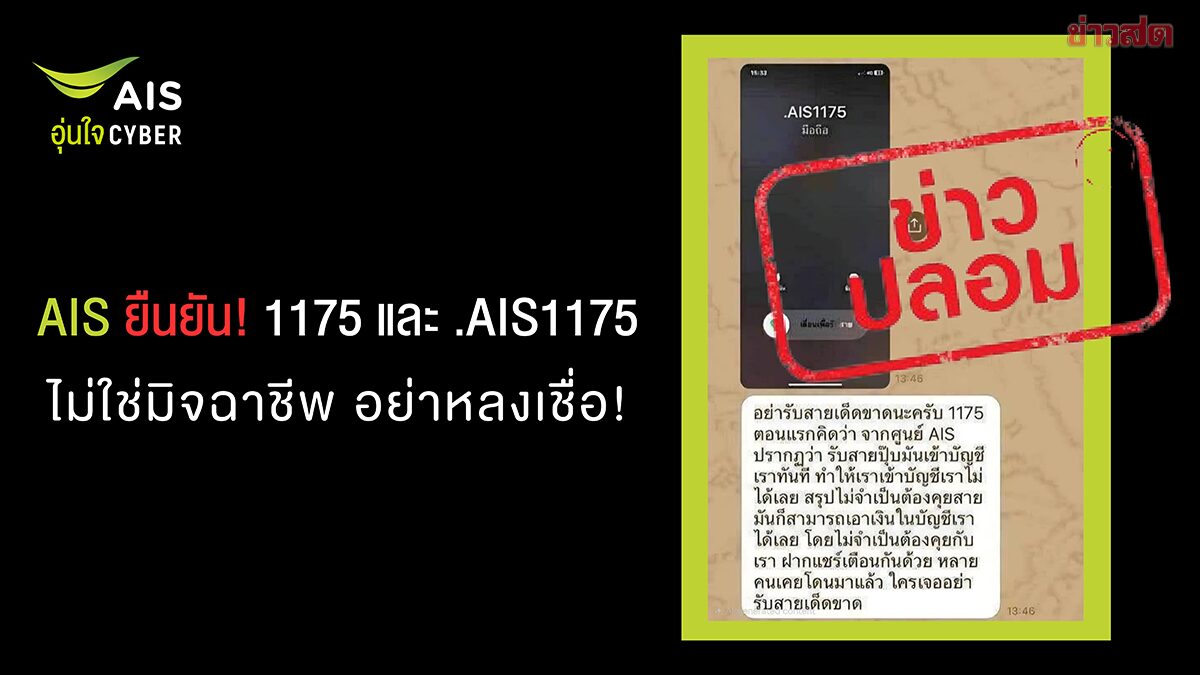 ประเด็นสำคัญจาก: AIS ยัน! เบอร์โทรเข้าจาก 1175 และ .AIS1175 ไม่ใช่มิจดูดเงิน วอนหยุดแชร์