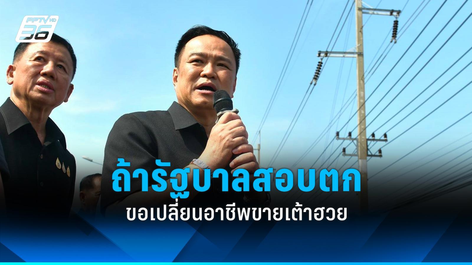 ประเด็นสำคัญจาก: “อนุทิน” ท้าประชาชน ถ้ารัฐบาลทำไม่ดี ไม่ต้องเลือกอีก ขอไปขายเต้าฮวยแทน