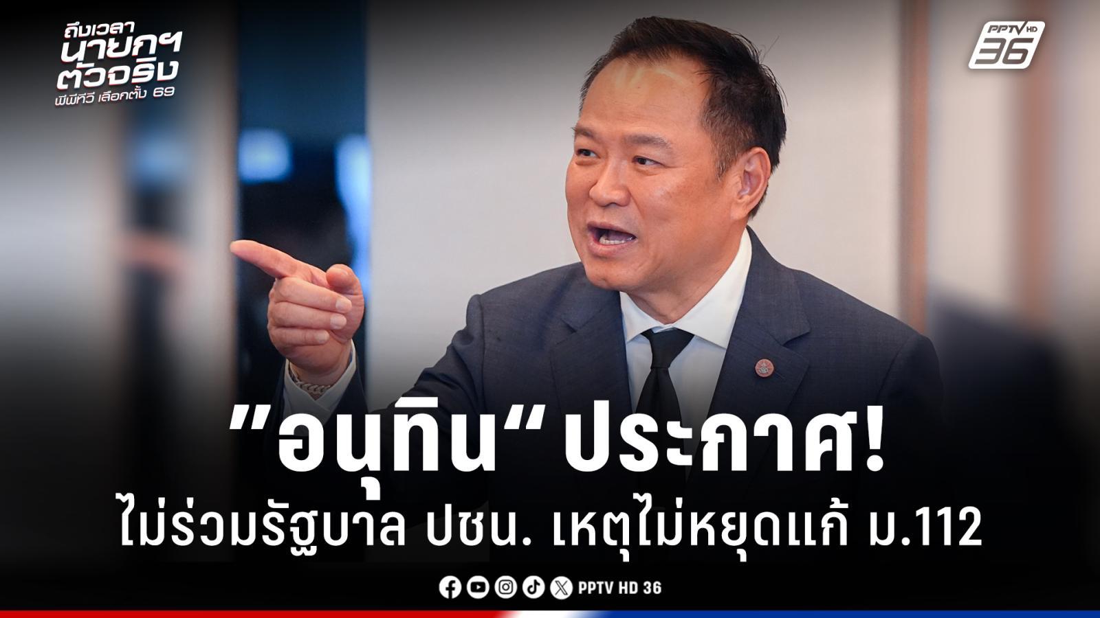 ประเด็นสำคัญจาก: ”อนุทิน“ ประกาศไม่ร่วมรัฐบาล ปชน. เหตุไม่หยุดแก้ ม.112