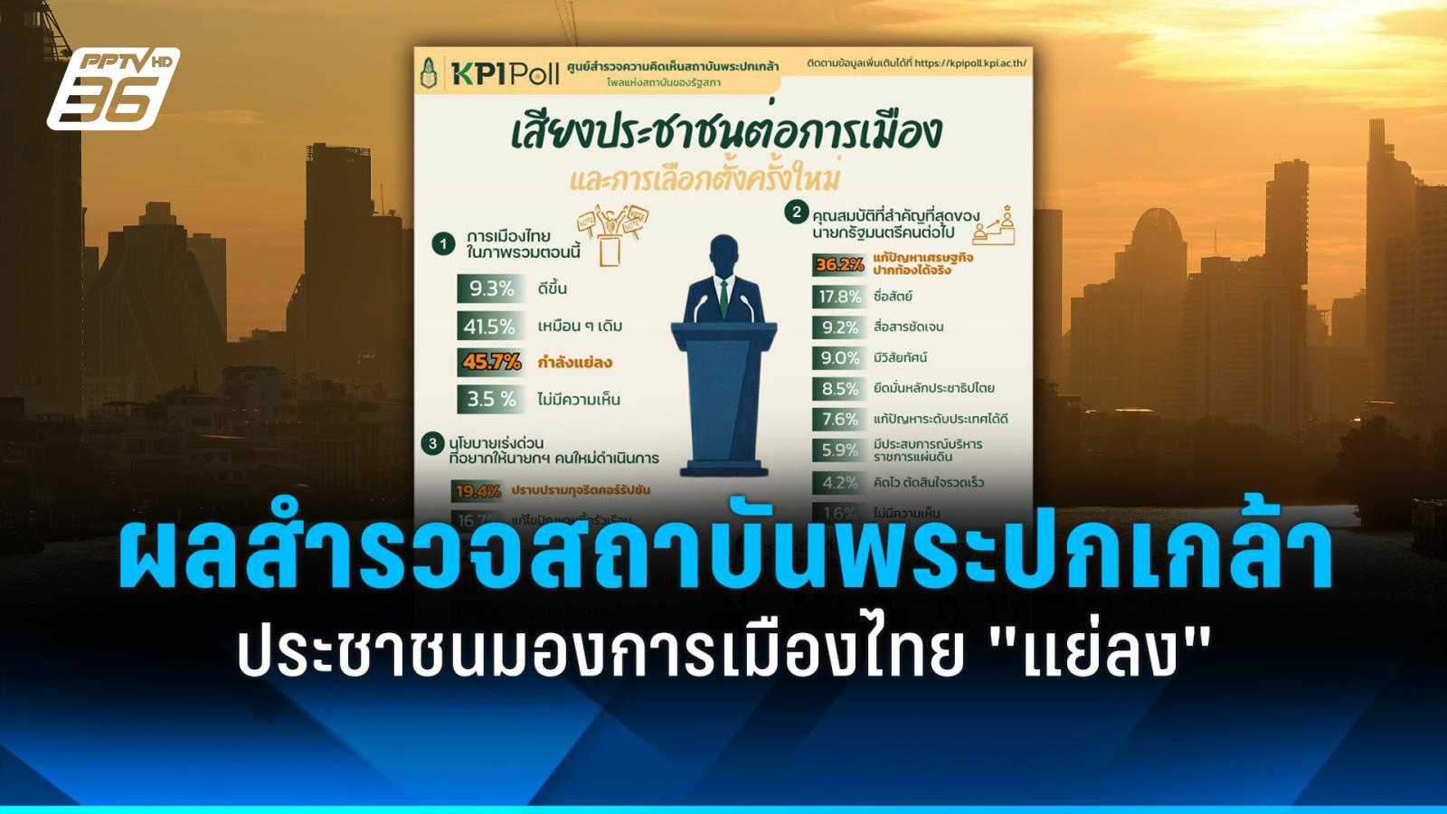 ประเด็นสำคัญจาก: สถาบันพระปกเกล้า เปิดผล “KPI Poll” ประชาชนมองการเมืองไทย “แย่ลง”
