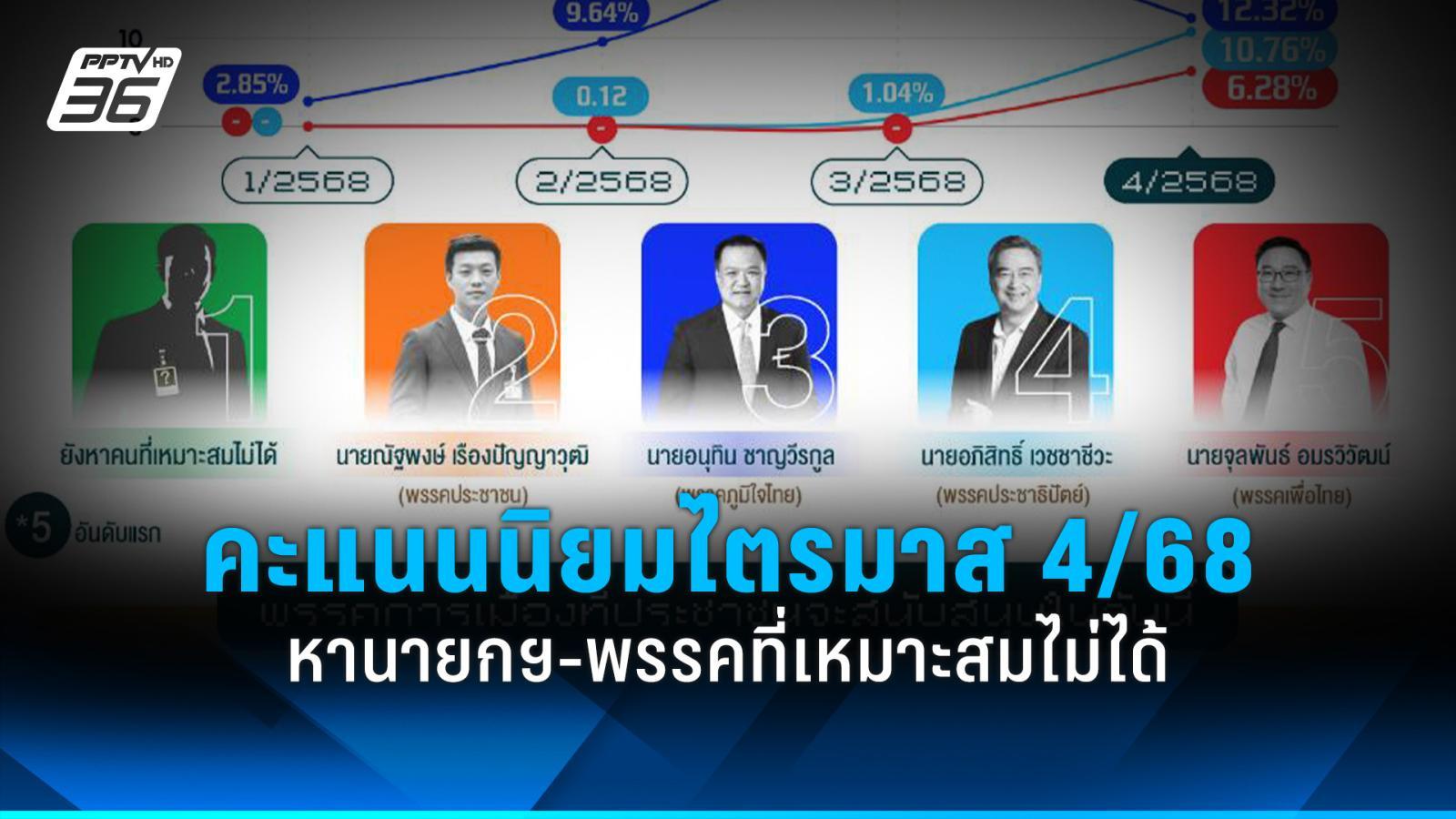 ประเด็นสำคัญจาก: นิด้าโพลเผยคะแนนนิยมทางการเมืองไตรมาส 4/68 หานายกฯ-พรรคที่เหมาะสมไม่ได้