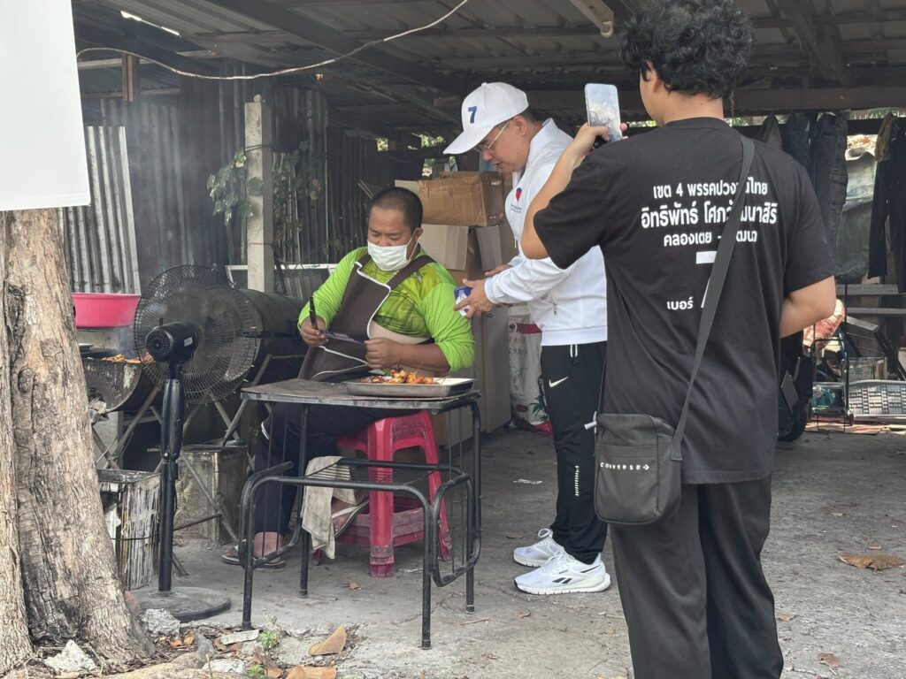 ทีมงานพรรคปวงชนไทยพูดคุยกับชาวบ้านในชุมชนหลัง สน.ทองหล่อ