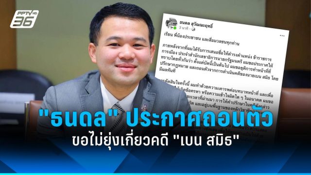 ประเด็นสำคัญจาก: “ธนดล” ถอนตัว! ขอไม่ยุ่งเกี่ยวคดี “เบน สมิธ” หลังนั่ง ขรก.การเมือง